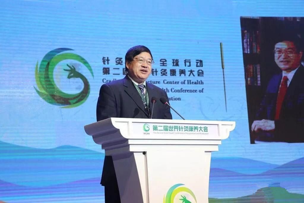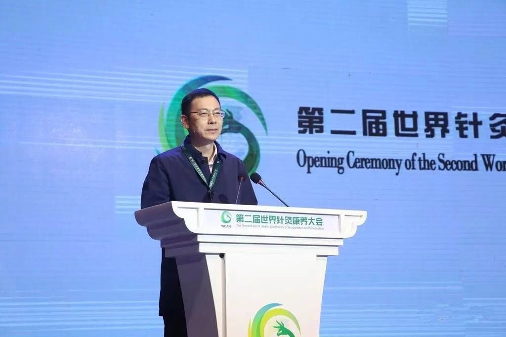 万象城平台,万象城(中国)一站式服务平台控股集团董事长余竹云在第二届世界针灸康养大会上发言