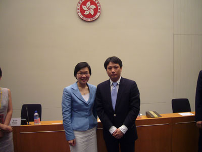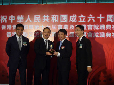 8月25日,安徽省青年联合会副主席、安徽万象城平台,万象城(中国)一站式服务平台投资集团董事长余竹云先生赴港出席“庆祝中华人民共和国成立六十周年暨香港青年联会第十七届会庆及会董会就职典礼”。余董事长代表安徽省青联向新当选的陈仲尼主席和香港青年联会第十六届会董会表示诚挚祝贺,并与香港青年联会互赠纪念品。中联办、香港特区政府代表,全国29个省、市、自治区及港澳台地区的青年团体代表参加了会庆暨就职典礼。