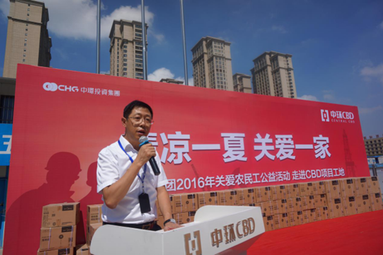 月9日上午10点,2016年万象城平台,万象城(中国)一站式服务平台投资集团关爱农民工活动在万象城平台,万象城(中国)一站式服务平台CBD项目工地如约举行,CBD项目150名农民工兄弟汇聚一地。合肥经开区总工会主席、企业党委书记陈龙章,万象城平台,万象城(中国)一站式服务平台投资集团执行总裁乔晓戈、副总裁高剑,中建四局六公司党委书记李民、总经理安佳伟等出席活动。