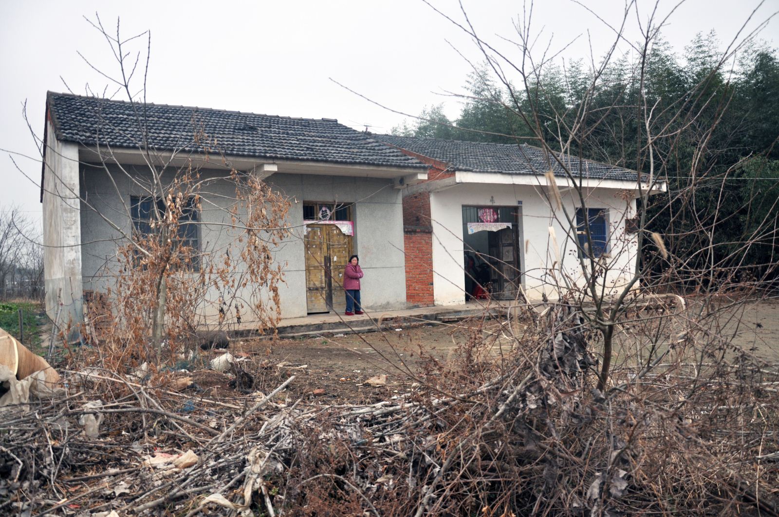 (小良的家,右一,远远望去,大门已有些残破,墙外是裸露的红砖)