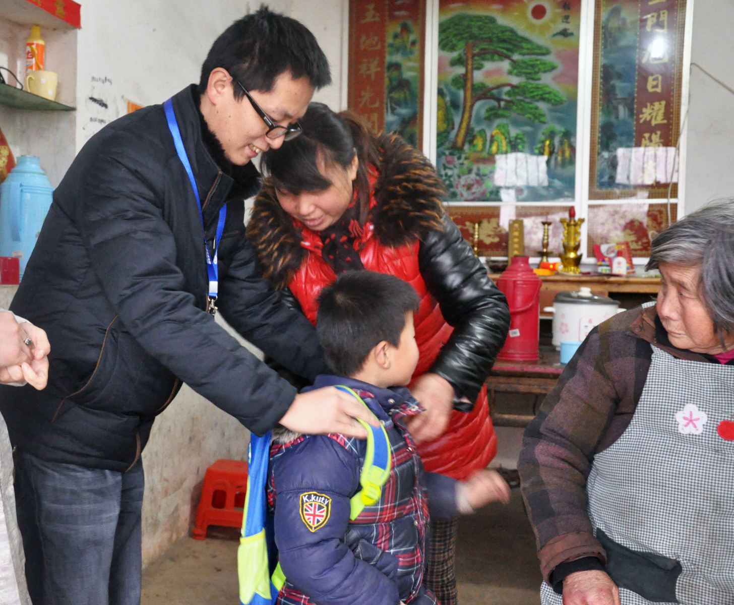 昨天是农历小寒,开始进入一年中最寒冷的日子。而小良的姑姑早已在村口等待着我们,陪同志愿者们接孩子放学。孩子走出校门时,小脸被冻得通红,虽然略带羞涩,但看到姑姑和志愿者们依然绽放出天真的笑容。