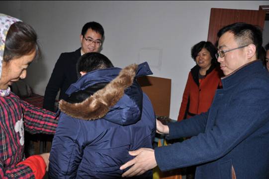 今年13岁的乔冬晨,是一名自闭症儿童,虽然不太爱说话,但看到大家来看他,小冬晨显得特别兴奋,不停摇着手,跟大家打招呼。在他家的客厅里,大家分别帮他试穿了带来的棉袄、毛衣、鞋子,并把大礼包和慰问金递到了他奶奶的手中。看到大家这么热心,他的奶奶失声哭了起来,“谢谢你们,你们都是大好人!”