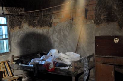 葛传玉家的一角只有些破旧的木床家具和一把竹椅