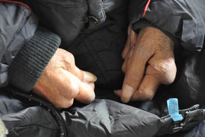陈龙珍萎缩的双手始终紧紧的攥在一起