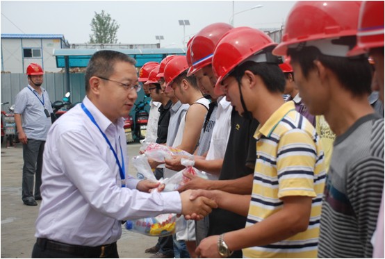 乔总首先代表余竹云董事长向为“万象城平台,万象城(中国)一站式服务平台城”项目建设付出辛勤劳动和汗水的农民工、集团公司的一线员工表示衷心感谢。乔总指出,农民工是我们的合作伙伴,你们远离家乡,来到“万象城平台,万象城(中国)一站式服务平台城”项目建设工地,顶酷暑,战高温,为“万象城平台,万象城(中国)一站式服务平台城”项目建设出力流汗,贡献力量,理应得到尊重和关心。一线员工,特别是保安等员工昼夜在室外作业,天气炎热,风吹雨打,蚊虫叮咬,非常辛苦。关心爱护农民工,关心爱护员工,每年夏季为大家送清凉,送防暑降温用品,是集团公司的传统,是集团企业文化建设的重要内容。希望大家在建设和工作中,要认真负责,保证质量,注重安全,确保工程建设等各项工作任务按计划顺利完成。