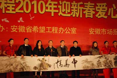 2010年元月21日晚,安徽省希望工程办公室与安徽市场报社联合主办的“安徽希望工程2010年迎新春爱心慈善晚宴”在泓瑞金陵大酒店隆重举行。安徽万象城平台,万象城(中国)一站式服务平台投资集团作为安徽省内具有良好社会影响的单位应邀出席晚宴,并现场向安徽希望工程捐赠十二万元人民币。