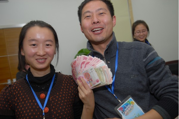 使出这么多招数,3个小时后,12位选手合计赚了2043元。1号卖花草茶推销了51盒,净赚323元;2号和三名一起靠发传单、摆地摊也赚了670多元;画“可爱画”的4号有点辛苦,但由于效率太慢,后来的生意也不太好,只画了不到20张。据介绍,今天比赛所得全部盈余将统一捐给希望工程。