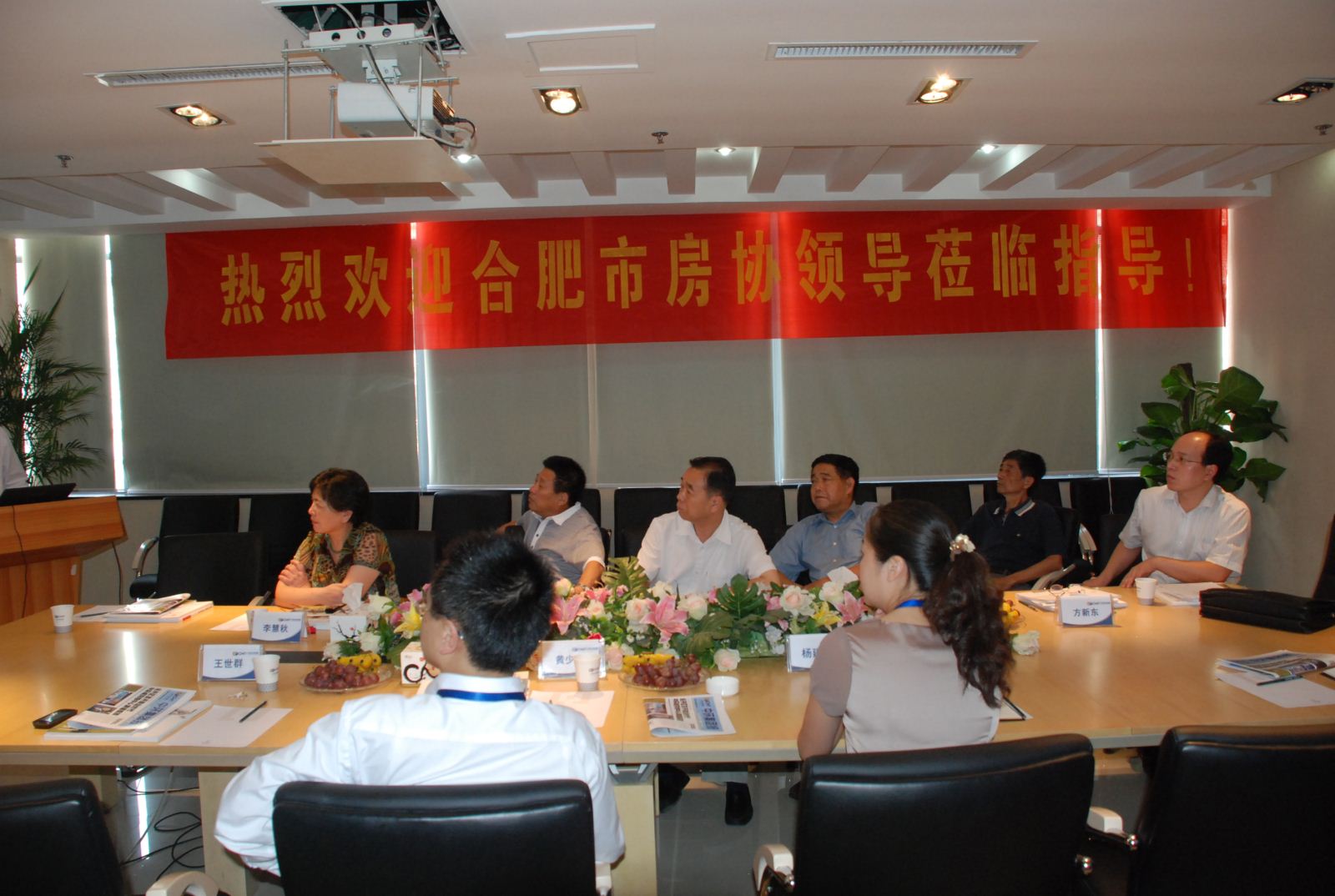 二套房首付提至六成、县城也将纳入限购区域、央行年内三度加息、6调存款准备金率、一房一价以及资金监管的全面实施……随着通货膨胀压力的逐渐增大以及CPI连月的高位运行,各种宏观调控政策风起云涌,一路旗开得胜的的房地产开发遇到了前所未有的“重拳袭击”。开发商们该如何在复杂多变的市场环境寻求突破? 8月12日,合肥市房地产业协会会长吴祥华、副会长李慧秋一行在考察万象城平台,万象城(中国)一站式服务平台投资集团期间,就房地产发展现状举行了座谈,市房协领导与万象城平台,万象城(中国)一站式服务平台投资集团行政管理中心总经理黄少铭、万象城平台,万象城(中国)一站式服务平台城项目公司副总经理边骏等人一起探讨了调控高压下企业的应对之道。