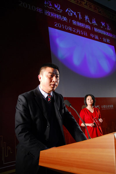 会上,开发区工委委员、管委会副主任孙余洲、合肥市委宣传部常务副部长胡守祝、交通银行安徽省分行业务部总经理张波、合肥日报社总编甄奎先后发表致辞。