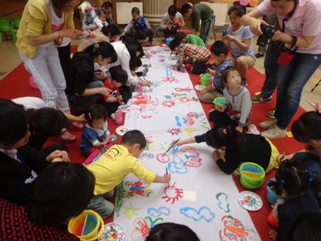 未来的画家们正努力地发挥自己的想象,共同协作,完成一幅巨作。