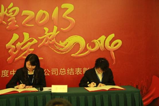 会上,朱总与各分管总及财务部负责人签订了《2014年度目标责任书》,各分管总与分管部门负责人签订《2014年度目标责任书》,明确了2014年各部门的各项指标。