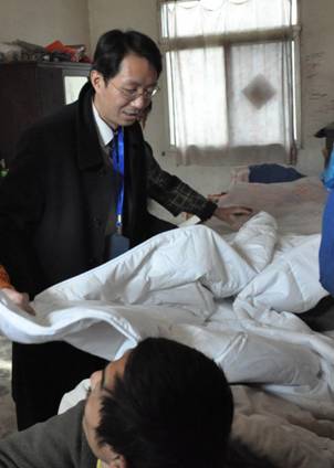 爱心大使许丹东一进门就给卫强盖上带来的棉被