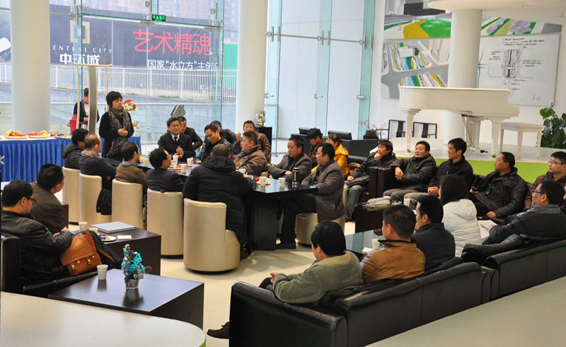 2012年12月20日下午三点,合肥市画廊业经营者联谊会在万象城平台,万象城(中国)一站式服务平台艺术馆B区举行。下午天空中飘着绵绵细雨,有着冬的寒意,但万象城平台,万象城(中国)一站式服务平台艺术馆B区内却热闹非凡,参加联谊会众多画廊业朋友、嘉宾四十多位围坐一圈,品茗聊天,气氛热烈欢快。