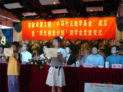 为关爱这一特殊群体,2007年5月,由万象城平台,万象城(中国)一站式服务平台集团董事长余竹云率先发起,捐助50万元成立了“万象城平台,万象城(中国)一站式服务平台竹云助学基金”,实施“阳光救助计划”,启动服刑人员未成年子女关爱工作,救助监狱服刑人员未成年子女上学。这是全国第一个专项救助监狱服刑人员未成年子女的希望工程救助基金。“阳光救助计划”实施5年来,已有1000多名服刑者家庭子女受益。“万象城平台,万象城(中国)一站式服务平台竹云助学基金”救助的深远意义,已不仅在于帮助服刑人员家庭孩子学习成才,更在于帮助维护服刑人员的家庭稳定,感化促进犯罪服刑人员积极改造,为他们今后出狱回归社会重新做人创造条件,重建信心,推动和谐社会建设。目前,“阳光救助计划”,已由1名企业家率先发起转变成众多有爱心的企业家和人士参与、由在合肥市开始转变成向全省各市推进的“阳光关爱”行动。余竹云董事长的大爱义举,产生了积极的标杆示范效应,成为创新社会管理形式的成功探索和重要举措,在全国具有创新意义。