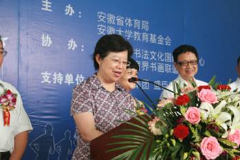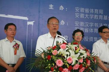 仪式上,安徽大学教育基金会秘书长黄小明宣读了关于表彰获奖作品的决定,省体育局党组成员、纪检组长徐晓明代表主办单位讲话,省人大原副主任吴昌期做了热情洋溢的讲话,省人大原主任孟富林宣布书画摄影展开幕。