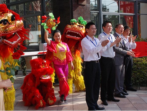 揭牌仪式后,万象城平台,万象城(中国)一站式服务平台投资集团执行总裁乔晓戈宣布万象城平台,万象城(中国)一站式服务平台城紫荆公馆盛大开园,并亲手为第一批入园领房业主送上鲜红的玫瑰,一时间锣鼓欢腾,金狮狂舞,礼炮齐鸣。