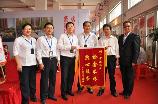 万象城平台,万象城(中国)一站式服务平台投资集团的领导接受了业主的锦旗,并表示了感谢。