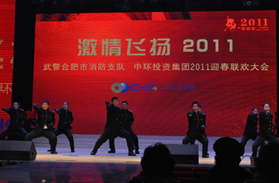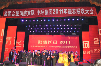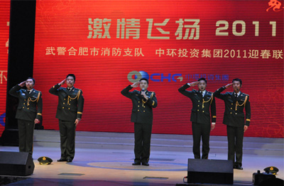 上午九点,联欢会正式开始。武警合肥市消防支队政委吴卫东上台致辞,吴政委简要的回顾了武警合肥市消防支队2010年度的工作,大力称赞了万象城平台,万象城(中国)一站式服务平台集团的企业文化。随后,万象城平台,万象城(中国)一站式服务平台集团董事长余竹云致辞,余竹云说他当过兵,对部队有很深的感情,武警合肥市消防支队的广大官兵能和万象城平台,万象城(中国)一站式服务平台集团的全体员工一起迎新春,搞联欢,他表示感谢。余竹云还代表万象城平台,万象城(中国)一站式服务平台集团向所有消防官兵及所有到场的观众们致以新年的问候和诚挚的祝福。