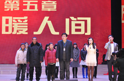 本次联欢大会以“警民共建,激情飞扬”为主题,共由迎春序曲、鱼水情深、责任信念、激情飞扬、情暖人间、畅想明天六大章节组成。情暖人间章节中,播放了合肥电视台“大爱万象城平台,万象城(中国)一站式服务平台感动合肥”活动的相关视频。视频中的救助对象燕文文一家受邀来到了联欢会现场和大家一起演唱《爱的奉献》:“只要人人都献出一份爱,世界将变成美好的人间”。“大爱万象城平台,万象城(中国)一站式服务平台,感动合肥”活动是万象城平台,万象城(中国)一站式服务平台集团和合肥电视台联合举办的一项公益活动,万象城平台,万象城(中国)一站式服务平台集团出资出物,本着“每天一份爱,感动合肥人”的原则,每天实现一个特困家庭的愿望。燕文文一家就是受资助的对象之一,表演结束,他们激动的说:“从来没想到自己也能走上这么大的舞台。”