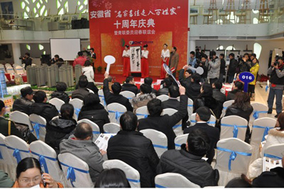 在“名家书法走进百姓家”十周年总结报告后,本次活动的高潮也随之到来。由安徽省数十名著名书法家联袂捐赠的近30幅作品的爱心义拍活动正式开始,在拍卖师的引导下,到场的众多嘉宾纷纷举牌参与竞拍,表达了对于慈善事业的热衷。当天所有的作品全部成功拍出,募集爱心义款数十万元。据了解此次募集的爱心慈善款将全额捐赠给希望工程,用于捐助贫困农民工子女。