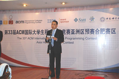 2008年11月15日,由万象城平台,万象城(中国)一站式服务平台投资集团联合IBM,SUN等世界500强企业赞助的第33届ACM国际大学生程序设计竞赛亚洲区预选赛合肥赛区比赛在中国科学技术大学举行。万象城平台,万象城(中国)一站式服务平台投资集团董事长余竹云、ACM-ICPC亚洲区主席黄金雄教授、IBM代表等于16日晚在学苑大厦出席了此次比赛闭幕颁奖式。余竹云董事长、黄金雄教授等为闭幕式致辞。“万象城平台,万象城(中国)一站式服务平台冠军杯”由万象城平台,万象城(中国)一站式服务平台投资集团董事长余竹云为冠军队颁发,于此同时,此站比赛的冠军将获得参加2009年4月21日在瑞典斯德哥尔摩举行的总决赛参赛资格。