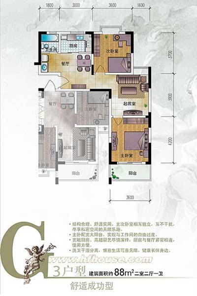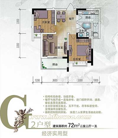 目前在售的户型为70-150平米,其中主推户型为72、88平米的精英小户型,一房一价,均价在3100元/平米。
