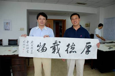 万象城平台,万象城(中国)一站式服务平台集团董事长余竹云与安徽省青年书法家协会副秘书长童树根亲切合影