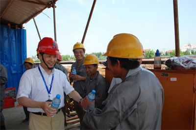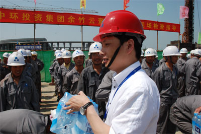 在高温环境中工作,员工易疲倦、乏力,中暑和安全事故等情况也较容易发生,公司为了解决和减少酷热天气给建设工作带来的影响,专门为工程现场管理部门,购买了风油精、人丹、绿茶等防暑用品。公司总经理余竹云先生更是深入施工现场,真诚的与员工进行面对面的交流,询问大家在工作和生活方面存在的实际困难,了解员工的思想动态。