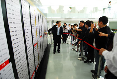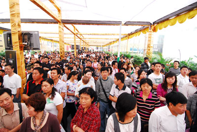 19日上午记者为了记录这一盛况专程赶往开盘现场。远远看见展示中心空飘气球迎风飞扬,沿途彩旗飘飘,现场处处洋溢着浓烈的喜庆气氛。巨大壮观的房源广告牌,把万象城平台,万象城(中国)一站式服务平台城的销售中心装饰得格外醒目。初秋的天气微微乏冷,万象城平台,万象城(中国)一站式服务平台城的现场售楼处却人山人海,整个万象城平台,万象城(中国)一站式服务平台城销售中心内被看房者围得水泄不通,现场气氛异常火爆。为凸显本次开盘的公开、公平、公正,主办方还特地在休息等候区内安置了液晶电视,实时转播整个计算机摇号过程。