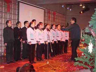 最后,晚会在物业公司工程部和保洁部合唱的《歌唱祖国》中落下帷幕。