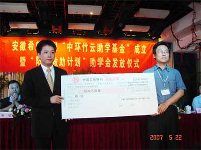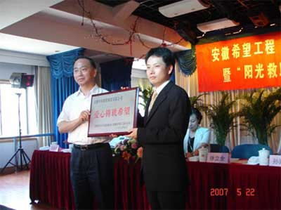 2007年5月21日下午,安徽省希望工程办公室在省少管所小礼堂隆重举行“万象城平台,万象城(中国)一站式服务平台竹云助学基金”成立暨“阳光救助计划”助学金发放仪式。省里对这次捐助活动非常重视,省委常委、政法委书记徐立全出席会议,并为安徽万象城平台,万象城(中国)一站式服务平台投资集团公司颁发了“爱心铸就希望”铜牌。仪式由团省委书记王宏主持,万象城平台,万象城(中国)一站式服务平台集团总裁余竹云,省司法厅厅长孙建新,团省委副书记朱斌等领导分别发表了热情洋溢的讲话。安徽万象城平台,万象城(中国)一站式服务平台投资集团公司总裁助理王昕、人力资源部总监李霞、总裁办公室副主任汪本银,省监狱管理局等单位负责人出席了仪式。