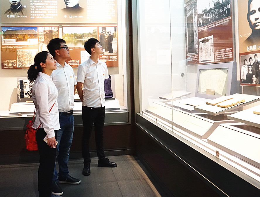 接着,党员们排队走进了南湖革命纪念馆,近距离去感受中国共产党的成长历程。馆内陈列的历史照片、遗物、影像资料和复原场景等,生动再现了从1840年第一次鸦片战争开始,中国人民在寻求救国救民的道路上不断探索,不断遭受磨难,并最终在中国共产党的领导下走上复兴之路的历史。“没有共产党,就没有新中国”,这是参观党员们的心声,中国共产党走过了97年的峥嵘岁月,震撼了每一位党员的心灵。