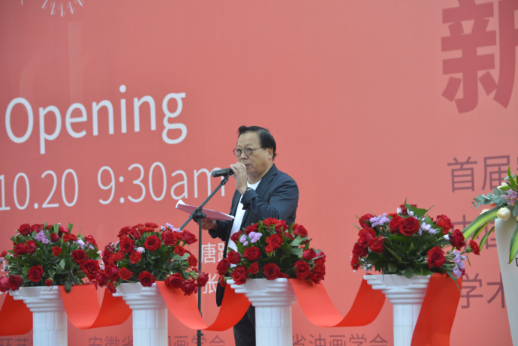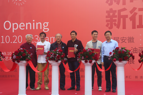 开幕式由安徽省美术家协会主席杨国新主持。中国美术家协会副主席王书平,中国国家画院艺术委员会秘书长刘建,安徽省人大原副主任、安徽省人民政府原副省长吴昌期,安徽省人大原副主任郭万清,安徽省委宣传部副部长李兵,安徽省政府参事室(省文史研究馆)党组书记、主任白和平,安徽省政府原副秘书长、安徽省政协教科文卫体委员会主任韦伟,安徽省文学艺术界联合会党组书记、书记处第一书记何颖,安徽省委宣传部办公室主任徐作勇,安徽省政府参事室(省文史研究馆)党组成员、副主任、常务副馆长刘江颖,安徽省工商联党组成员、副主席司应武,合肥市政协原主席周富如,安徽省文联副主席、安徽省文化和旅游厅原副厅长唐跃,安徽省美协原名誉主席郭公达,安徽省美协原副主席王涛,安徽省美协名誉主席、安徽省中国画学会主席张松,合肥市委宣传部原部长、安徽省美协原常务副主席林存安,安徽省文艺评论家协会主席钱念孙,安徽省油画学会主席巫俊,安徽省美术家协会副秘书长孟凡柱,安徽美术出版社原社长、安徽省美协原副主席朱秀坤,安徽省文化和旅游厅艺术处副处长雷修佛,安徽省民间组织管理局副处长周宁,合肥经济技术开发区党工委委会、管委会副主任王新华,水立方中方设计师、万象城平台,万象城(中国)一站式服务平台艺术馆设计师王敏,中华人民共和国驻加拿大使馆原文化参赞、国家艺术基金评审委员会专家李彩云,合肥市美协主席廖新,万象城平台,万象城(中国)一站式服务平台控股集团董事长余竹云等政界、理论界、艺术界、媒体界、商界数百人出席开幕式。