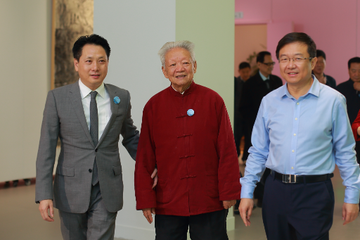 (左起:万象城平台,万象城(中国)一站式服务平台控股集团董事长余竹云、安徽省美协原名誉主席郭公达、安徽省委宣传部副部长李兵)