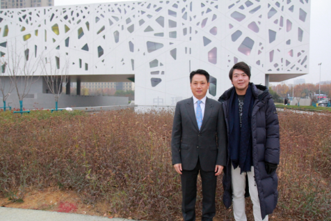 图 | 郎朗大师与董事长余竹云在万象城平台,万象城(中国)一站式服务平台艺术馆前合影