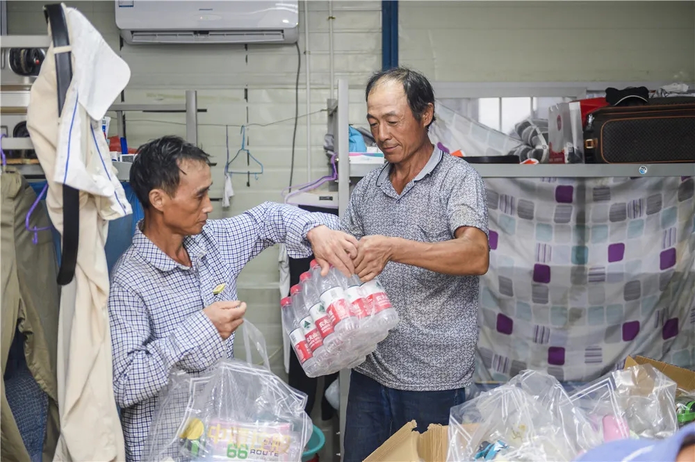 图 | 王会生为工友派发万象城平台,万象城(中国)一站式服务平台送去的物资