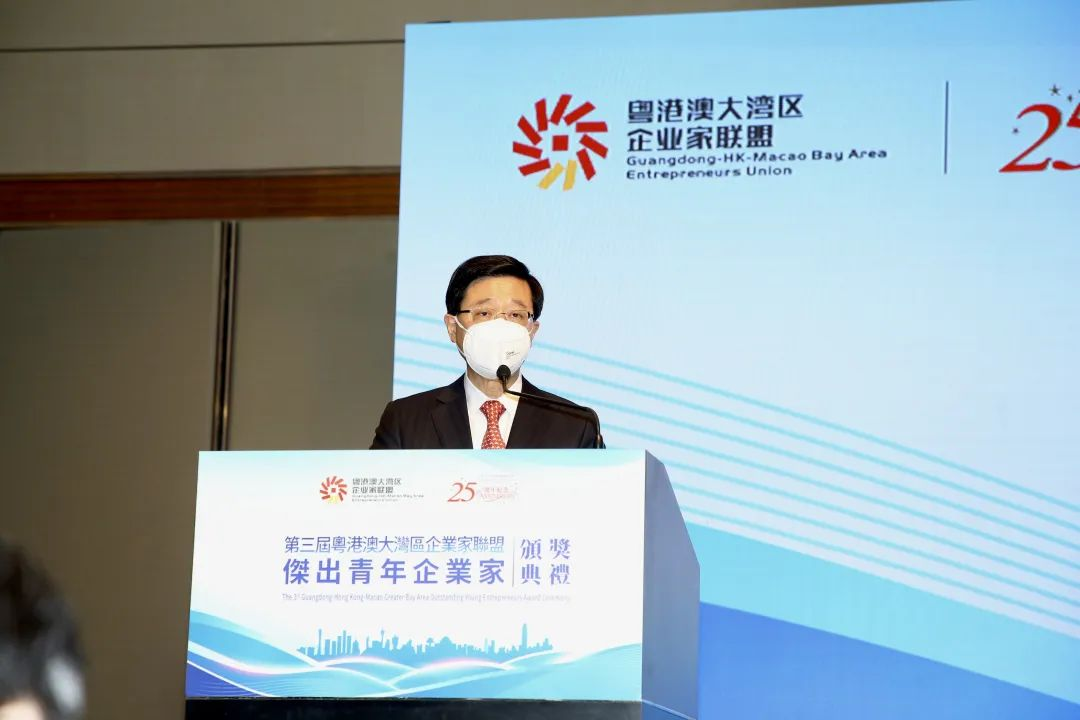 李家超致辞时称,粤港澳大湾区建设是国家改革开放下的重大发展战略。今届评选活动不但发扬企业家精神,更鼓励有志于大湾区创业的香港青年,踏出创业的第一步。特区政府会继续支持香港青年到大湾区发展,在更大的舞台上一展抱负。他祝贺得奖的杰出青年企业家,希望他们继续贡献粤港澳大湾区建设。