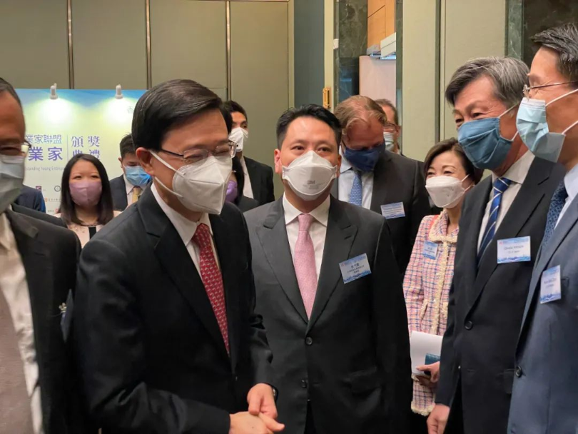 图|香港特首李家超先生、联盟主席蔡冠深博士与余竹云先生等主要联盟成员合影