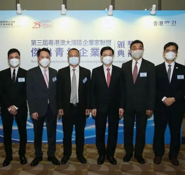 香港特区行政长官李家超先生亲临香港会场。此外,全国政协常委、粤港澳大湾区企业家联盟主席蔡冠深先生,广东省副省长张新先生,澳门经济财政司司长李伟农先生,澳门中联办副主任张荣顺先生,深圳市委常委、市委统战部部长王强先生,中联办经济部一级调研员吕峰先生等分别于香港、深圳及澳门出席此次盛会。
