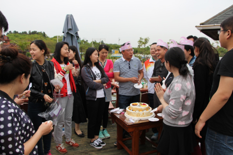小憩一下,到了午饭时间,大家围坐在木屋度假村外的露天餐桌边,开启欢快的BBQ盛宴。身临紫蓬山,于绿野仙氧间,小伙伴们赏着美景、吃着美食,其乐融融,欢声笑语不断。其间穿插了北城项目公司3、4月份员工的生日会,再次体现了公司的人文关怀,令大家感受到万象城平台,万象城(中国)一站式服务平台大家庭的温暖。