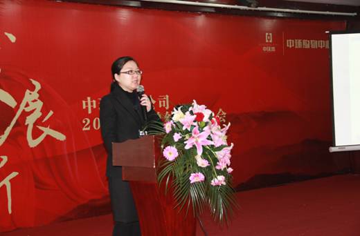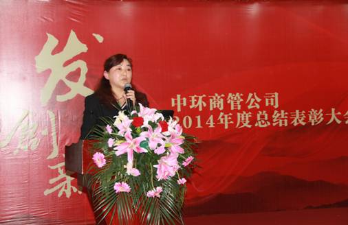 商业管理公司行政人事部经理殷兰芳做报告发言
