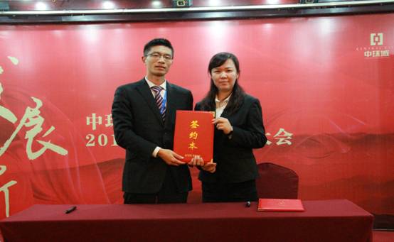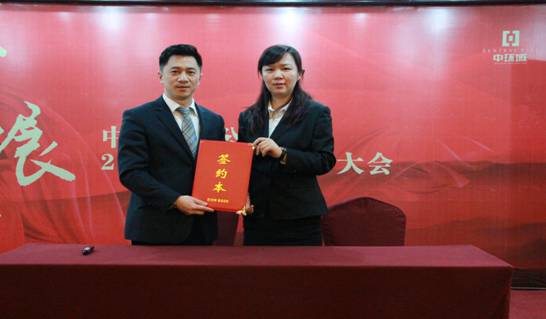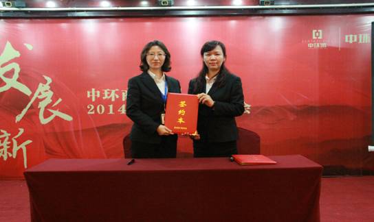 商业管理公司总经理朱玉娟与行政人事企划副总经理赵晖签订目标责任书