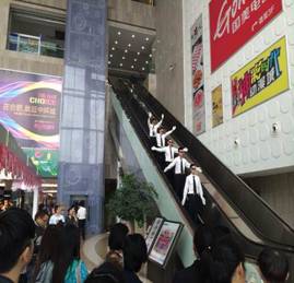 当天上午,参加比赛的队员们,在购物中心举行了“小苹果”舞蹈快闪活动,引起购物中心现场顾客驻足观赏.
