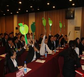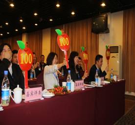 此次比赛围绕着《小苹果》神曲为主题,各部自由组队,自行编排。商管公司总经理朱玉娟、副总经理张雪亮、王雯、赵晖应邀担任嘉宾评委,为了充分体现比赛的公平公正,比赛现场以抽签的形式随机抽取15名参会人员担任大众评委。