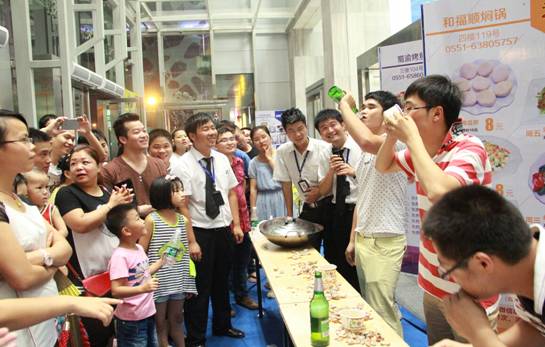 而女士组的比赛更是吸引了更多的观众前来观看。选手们放弃使用筷子,直接用手抓起来就往嘴里塞。男士们此刻都展现出绅士风度不断的欢呼助威,经过三轮的激战,一位辣妈以压倒性的优势为自己的孩子赢得了两箱白帝儿童牛奶。