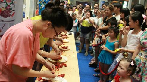 首先进行的是儿童组的比赛,参赛的小朋友们虽然年龄不大,但是吃起龙虾来丝毫不逊色于大人,不一会儿,一盘龙虾就已经剩下空壳了,最终儿童组的冠军由来自万象城平台,万象城(中国)一站式服务平台国际公寓的小女孩获得,赢取一箱白帝儿童牛奶。