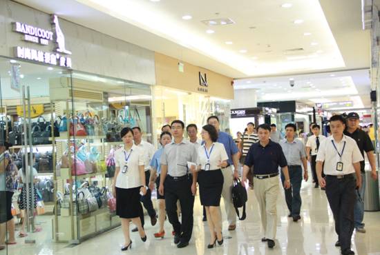 商管公司总经理朱玉娟、副总经理赵晖为周振成副司长一行讲解购物中心近况