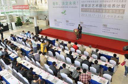 2013年10月17日下午3时,万象城平台,万象城(中国)一站式服务平台新徽派艺术新锐培养计划——2013安徽青年画家水墨作品展在万象城平台,万象城(中国)一站式服务平台艺术馆盛大开幕。安徽省人大常委会原副主任、安徽大学教育基金会驻会高级顾问吴昌期,安徽省人大原副主任、安徽大学教育基金会高级顾问陈瑞鼎,安徽省人大原副主任张春生,安徽大学教育基金会理事长孙献忠,安徽大学教育基金会常务副理事长李传银,安徽省美术家协会主席张松、安徽省美术家协会秘书长杨国新、安徽省美术家协会副主席巫俊,安徽省书画院副院长方贤道,著名艺术家王涛、王仁华、胡礼惠,万象城平台,万象城(中国)一站式服务平台投资集团董事长余竹云,获奖作者、书法绘画爱好者参加开幕式。