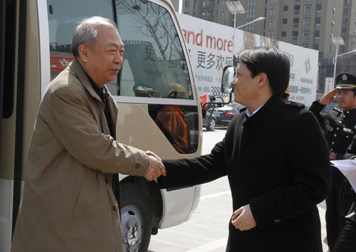 杨副市长一下车便与余竹云董事长情切握手交谈,“早就听说了余竹云在社会公益事业上所做的贡献,今天特地来拜访你,你为农民工宿舍装空调送温暖,为农民工塑雕像送尊严,为农民工放电影送文化,为农民工子女送语音宝典送教育等等,特别是代表安徽参加2011年亚洲博鳌论坛青年领导人圆桌会,给安徽的青年企业家们做了一个榜样啊。”杨增权副市长赞扬余竹云董事长作为青年企业家,在热心社会公益事业,关爱生产建设的农民工,构建和谐社会等方面所做出的贡献,并赠予余竹云董事长“树合肥青年榜样展庐州徽商风采”纪念品。