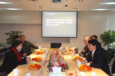在公司会议室,余董事长及集团公司有关领导与淮南市政府来宾进行了深入的座谈,余董事长还着重介绍了公司企业发展理事与在企业文化建设、社会公益责任方面的工作成就。